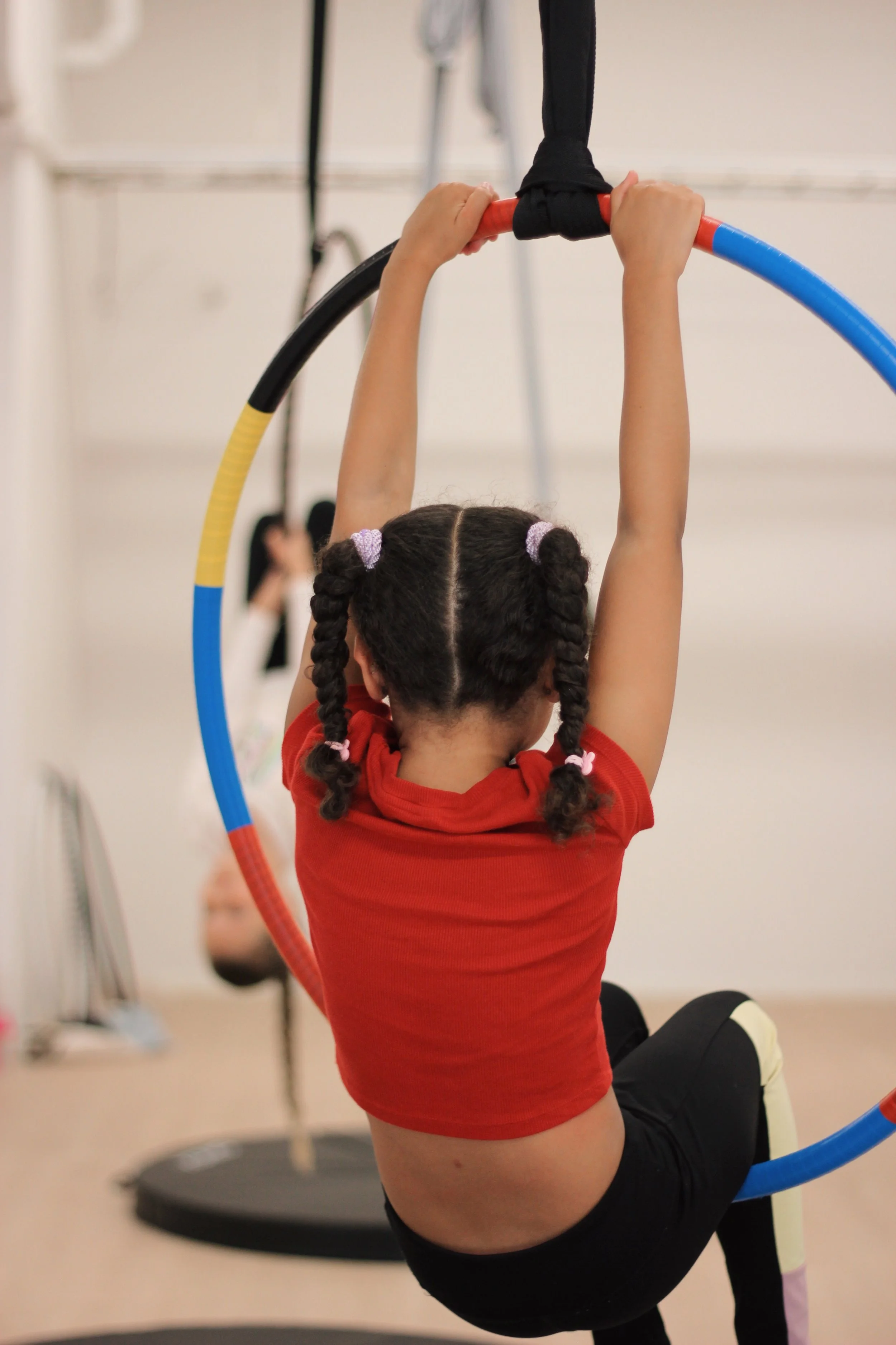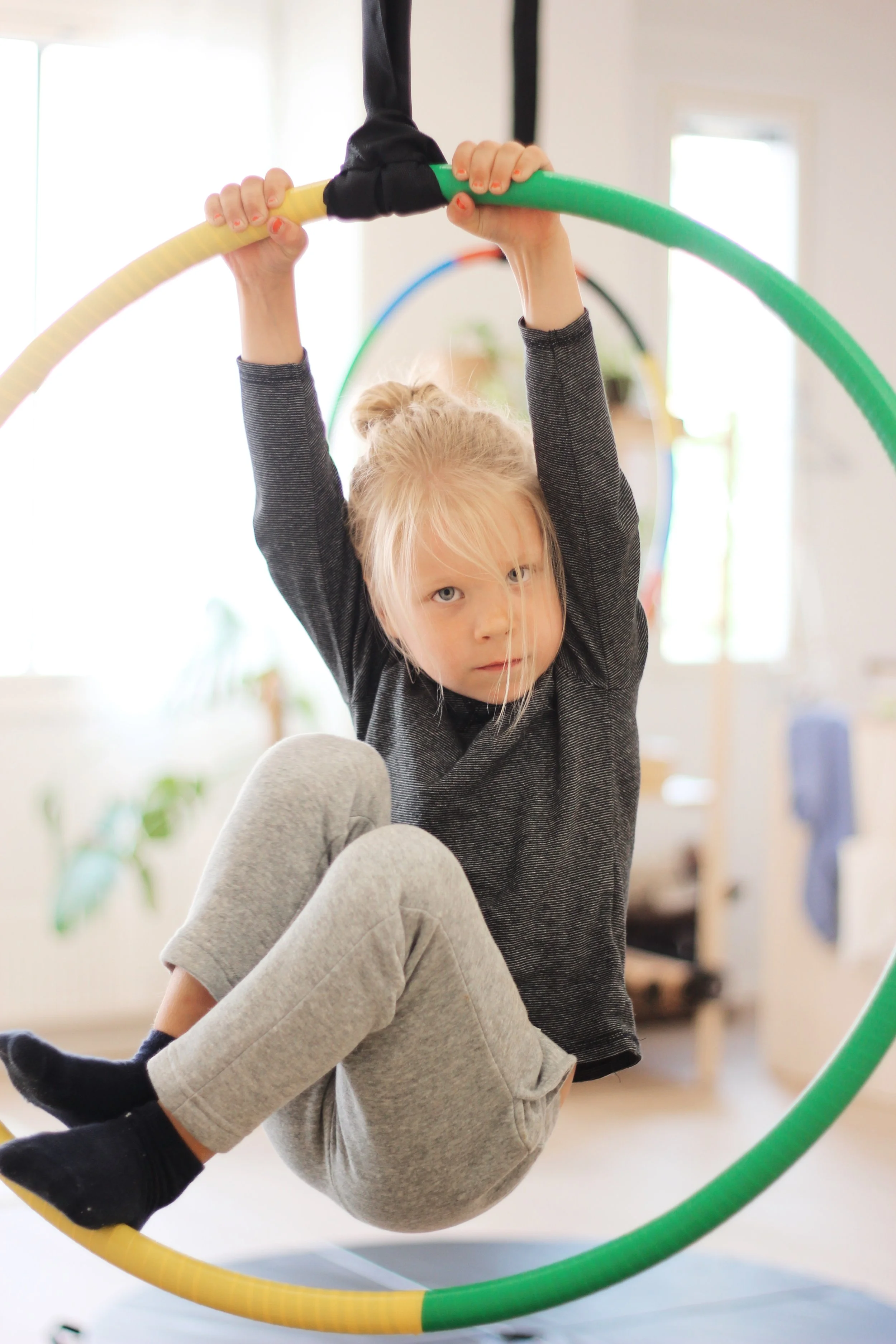 Lasten ilma-akrotunneilla temppuillaan liinoilla, rengastrapetseilla, köydellä ja vertikaalikankailla. Opitaan leikkien rennossa ilmapiirissä. Edetään ilma-akrobatian alkeistekniikoista kohti jokaisen omaa taitotasoa ja upeita temppuja.
